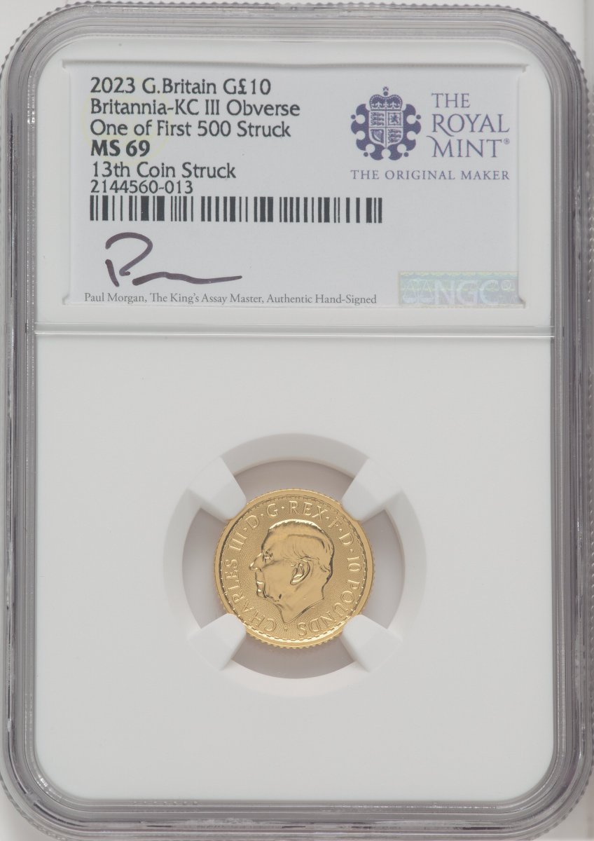 69 1000 Royal Succession (2023 G.B. G10 BRITANNIA-KC III OBVERSE 13TH COIN STRUCK) (1000) – NGC