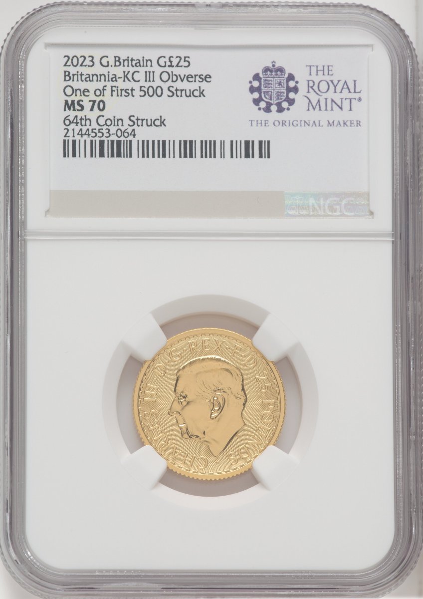70 1000 Royal Succession (2023 G.B. G25 BRITANNIA-KC III OBVERSE 64TH COIN STRUCK) (1000) – NGC