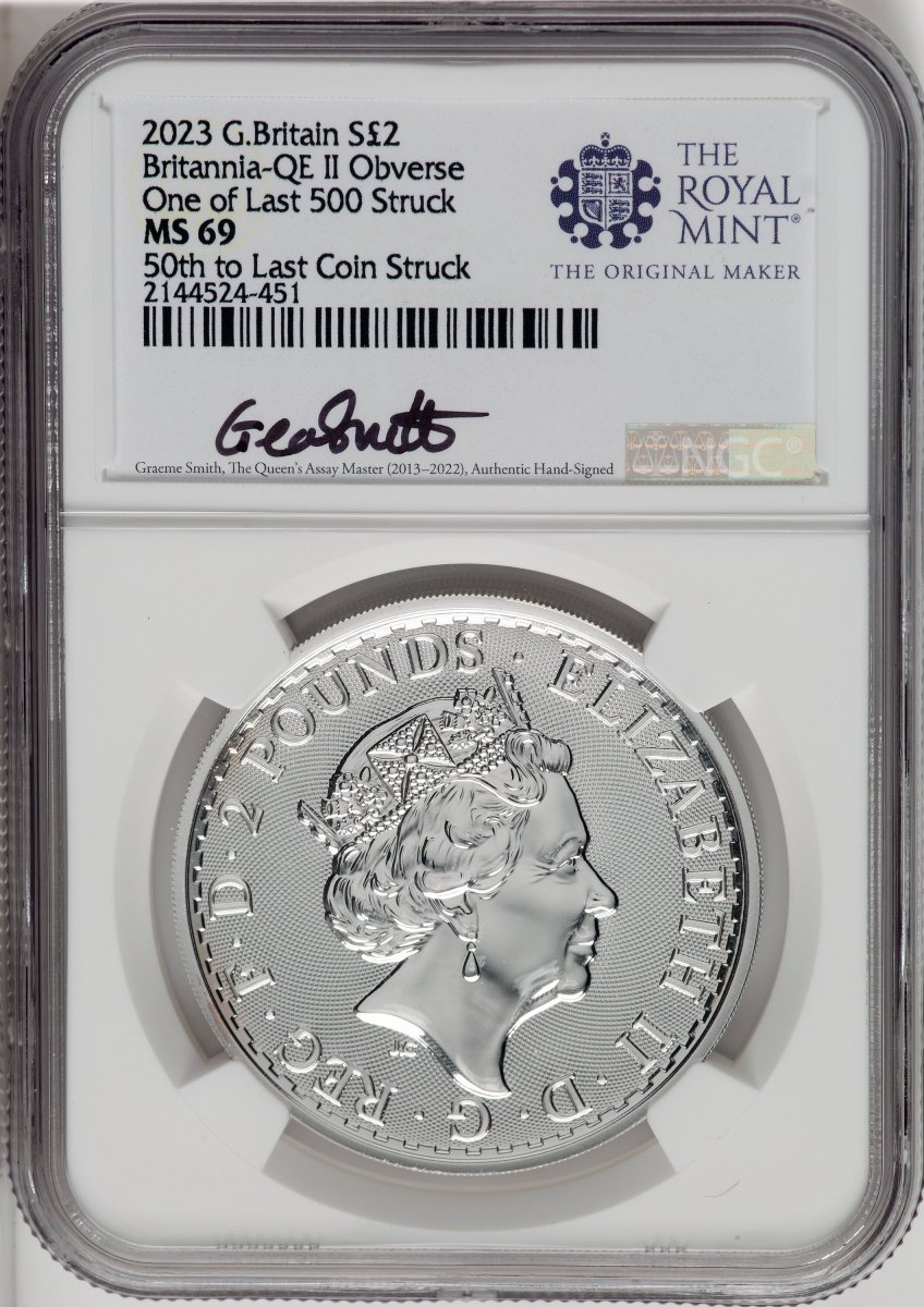 69 1000 Royal Succession (2023 G.B. S2 BRITANNIA-QE II OBVERSE 44TH TO LAST COIN STRUCK.) (1000) – NGC