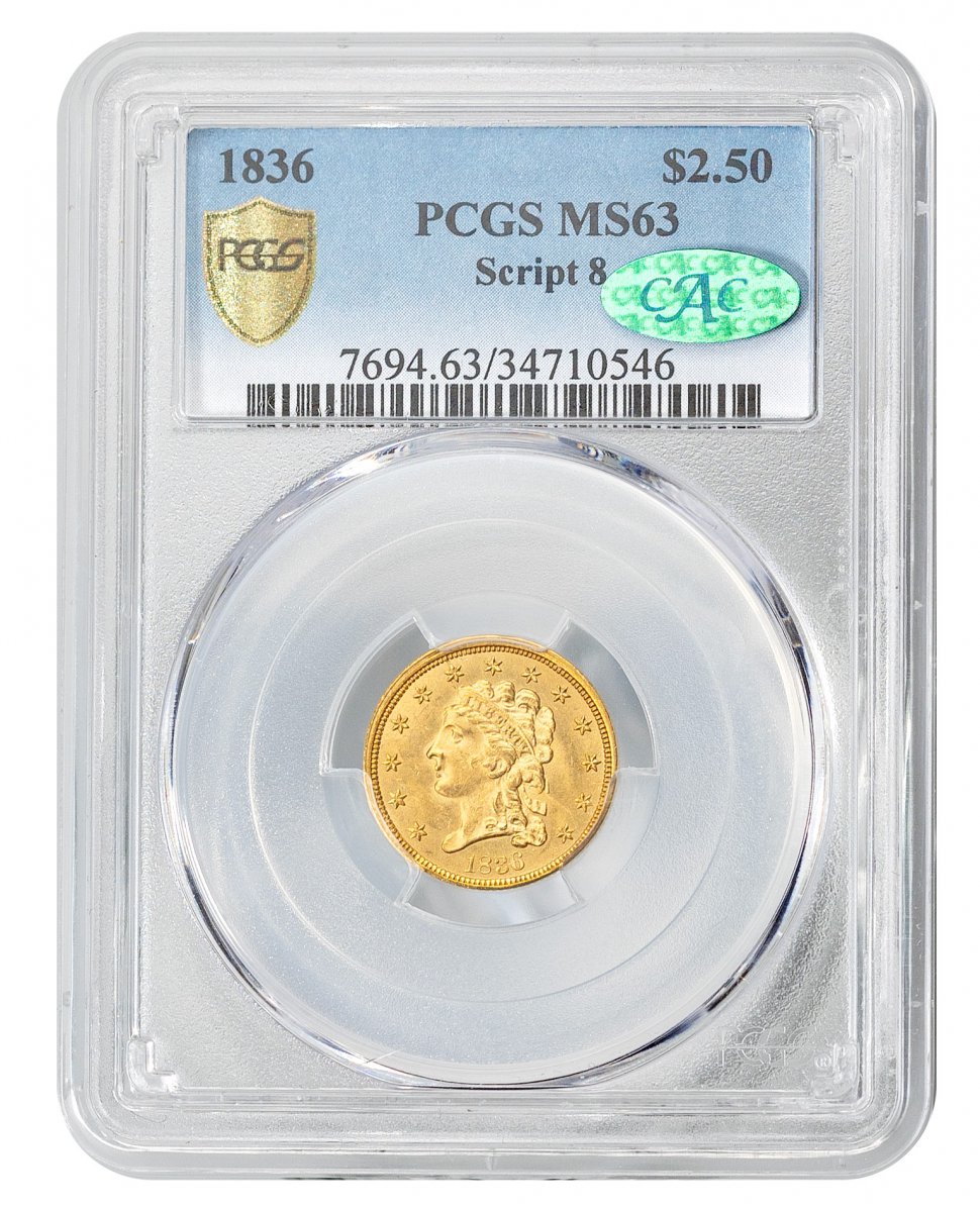 MS-63 1836-Gold Coins – Classic Head $2.5 – PCGS
