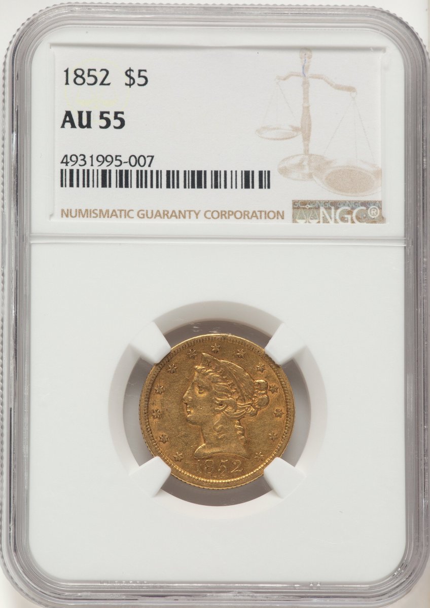 55 1852 Liberty Half Eagles (1852 $5) (1852) – NGC
