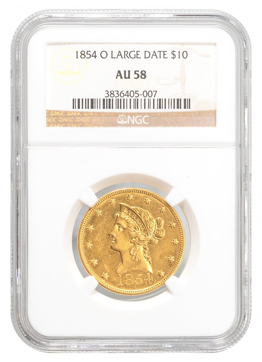 AU-58 1854-O-Liberty Head $10 – Type 2 No Motto – NGC