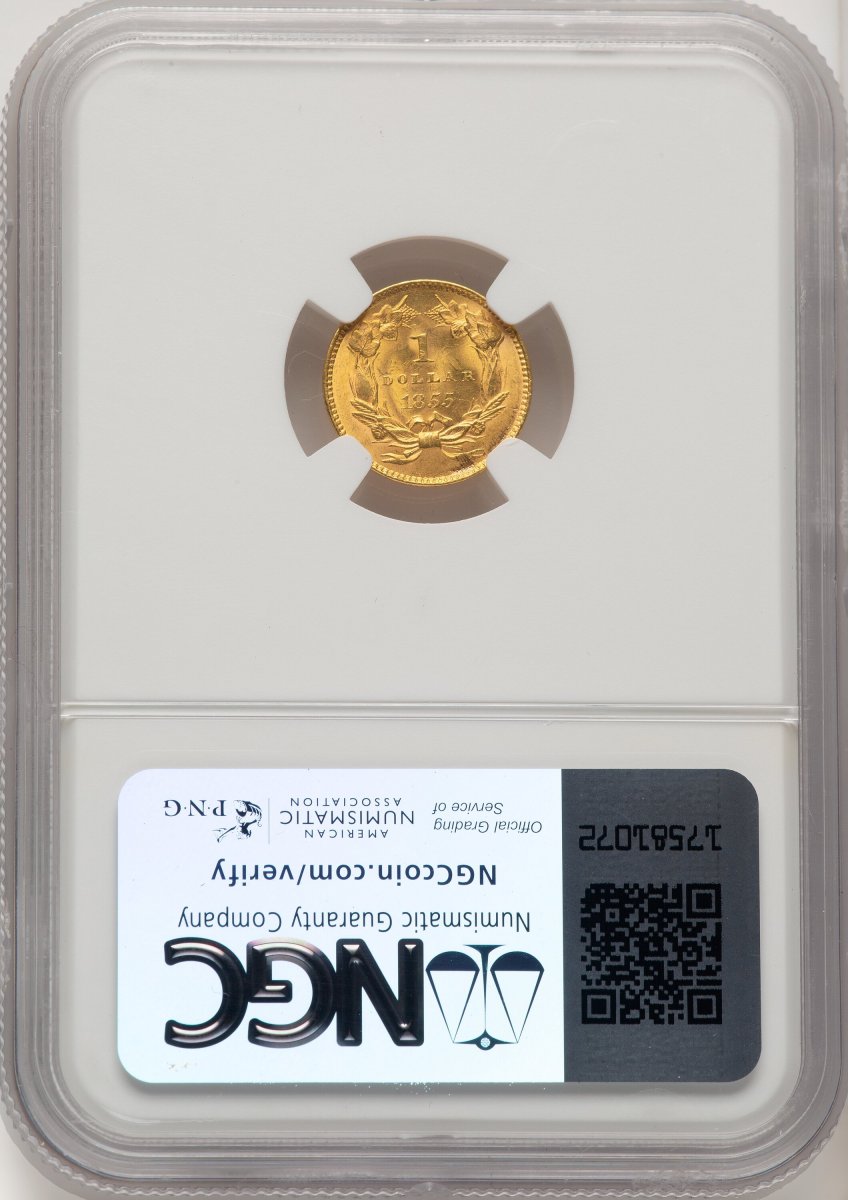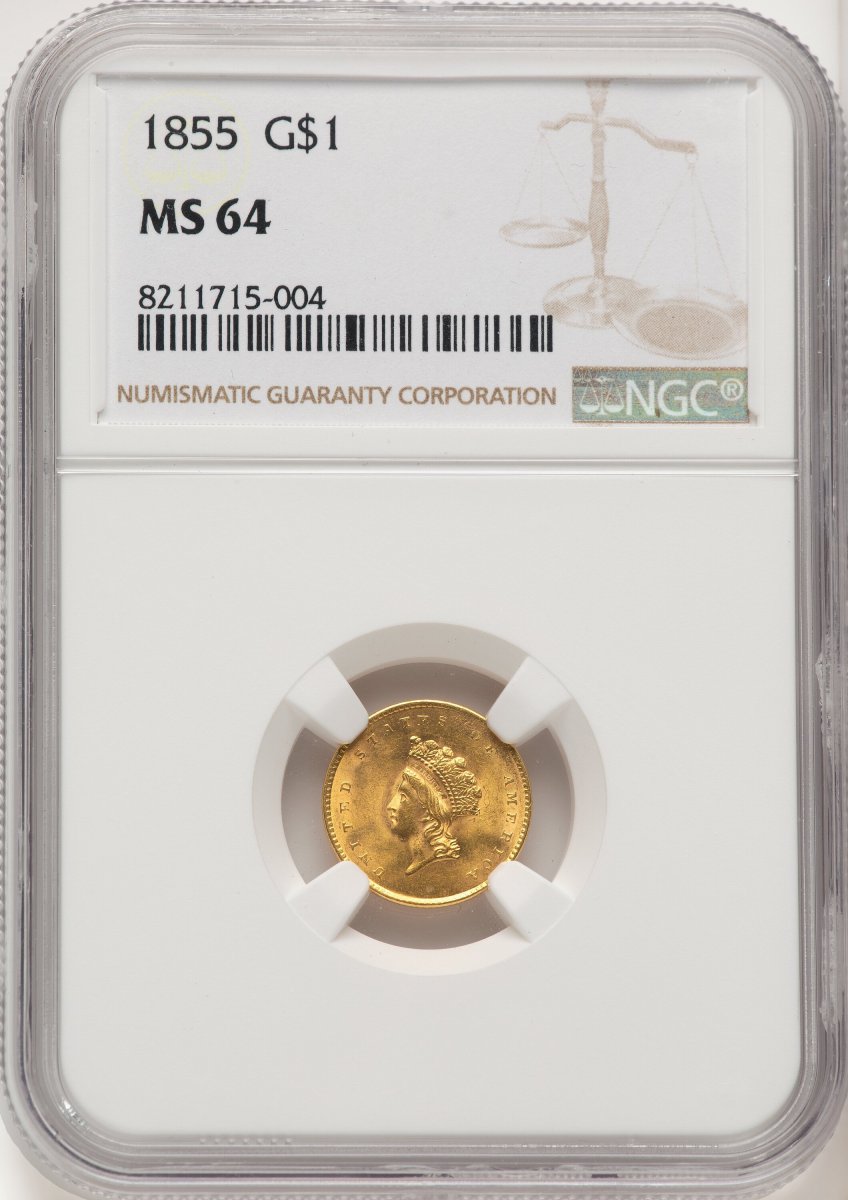64 1855 Gold Dollars (1855 G$1 Type Two, MS) (1855) – NGC