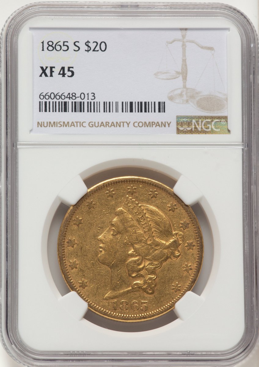 45 1865-S Liberty Double Eagles (1865-S $20) (1865-S) – NGC