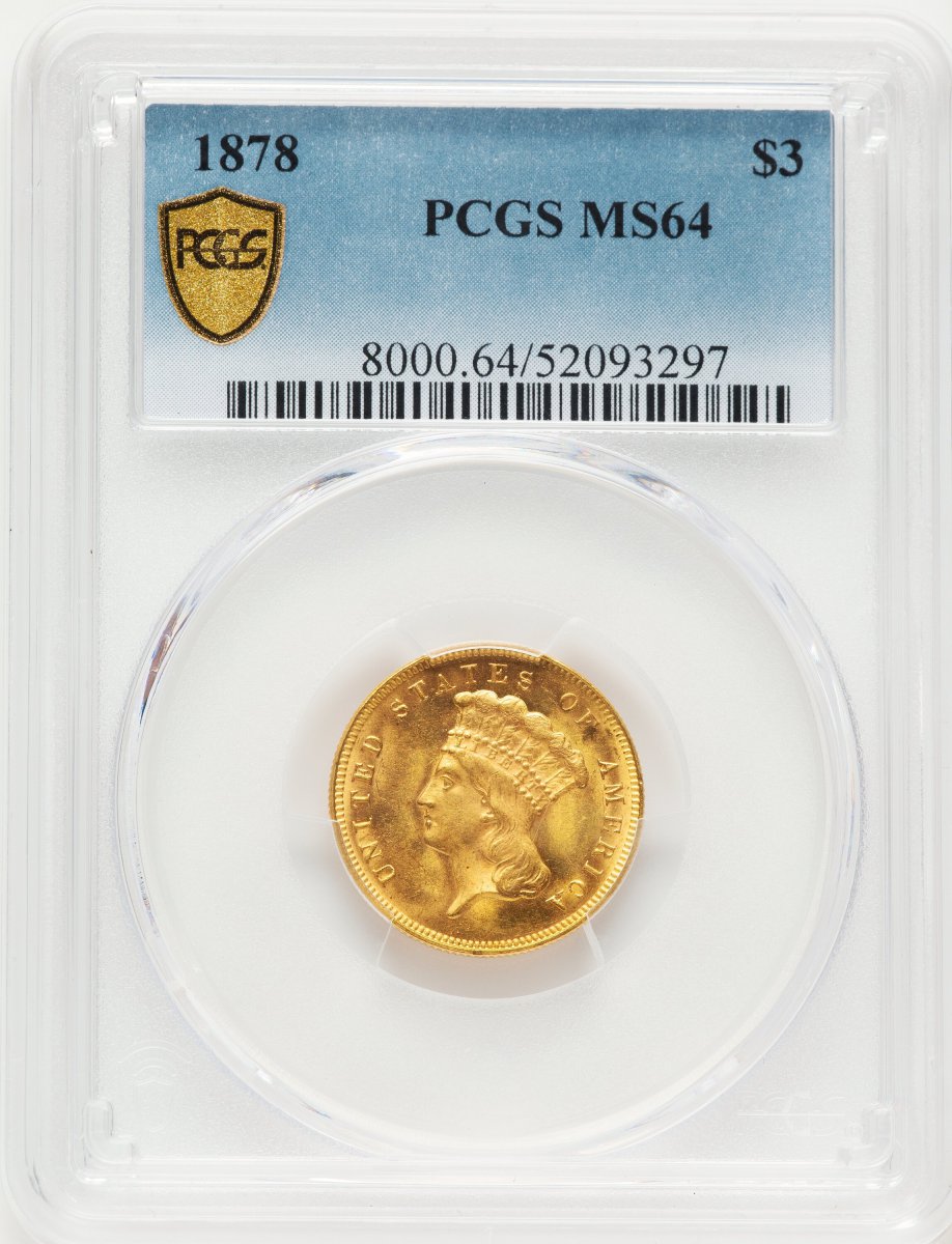 64 1878 Three Dollar Gold Pieces (1878 $3 PCGS Secure) (1878) – PCGS