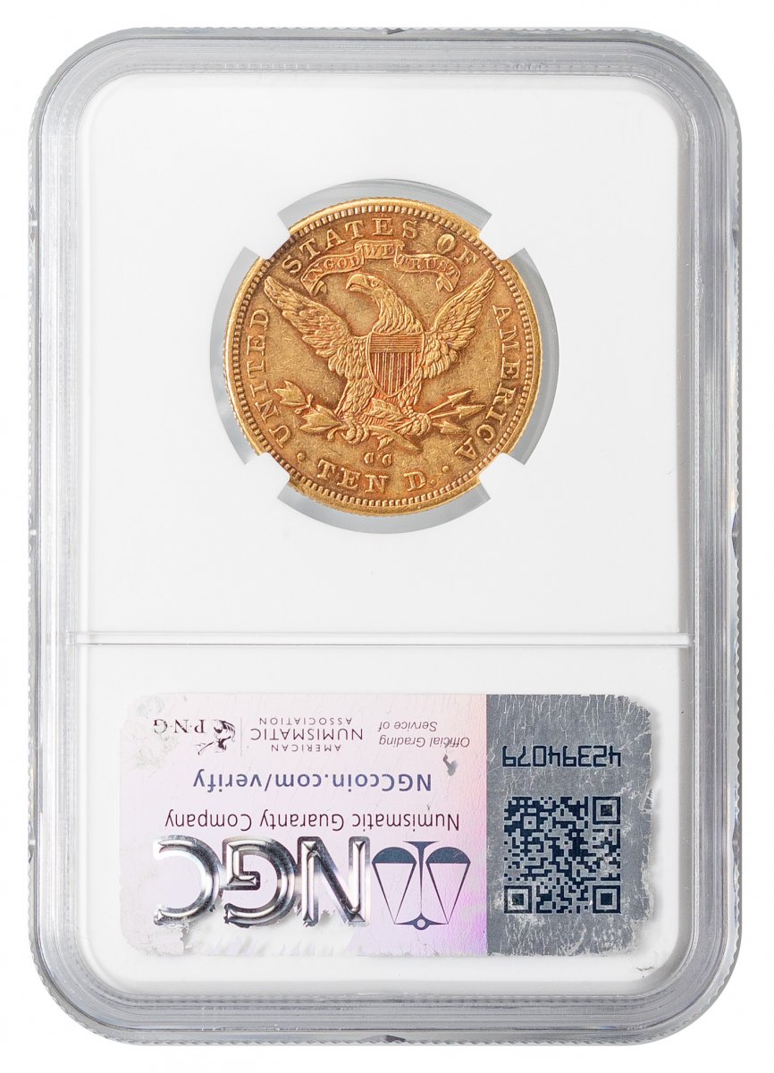 AU-58 1883-CC-Liberty Head $10 – Type 3 With Motto – NGC