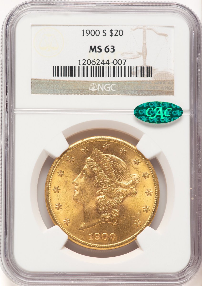 63 1900-S Liberty Double Eagles (1900-S $20 CAC) (1900-S) – NGC