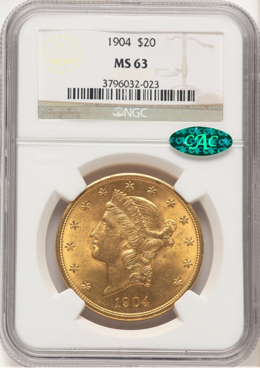63 1904 Liberty Double Eagles (1904 $20 Liberty CAC) (1904) – NGC