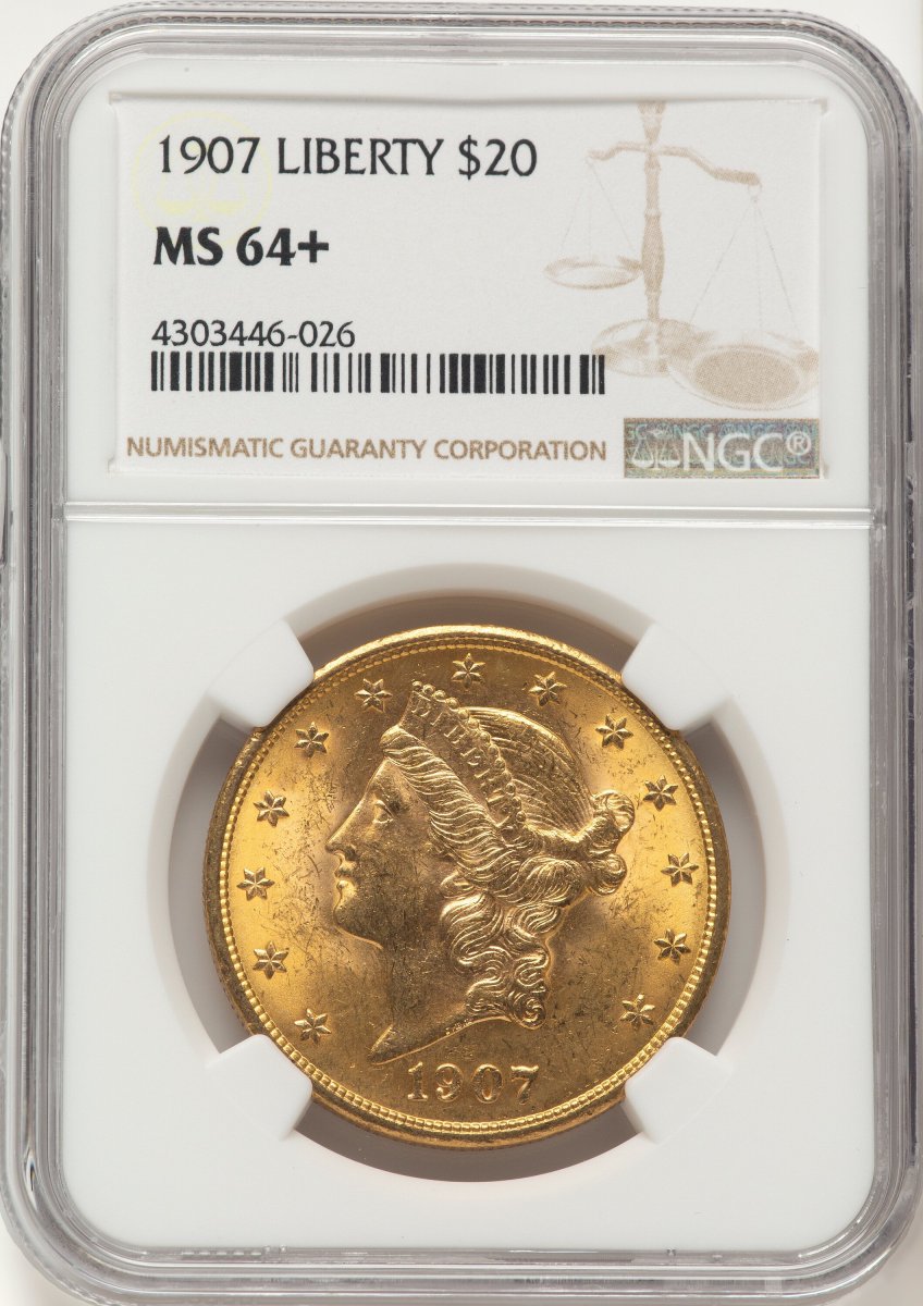 64 1907 Liberty Double Eagles (1907 $20 Liberty, MS NGC Plus) (1907) – NGC