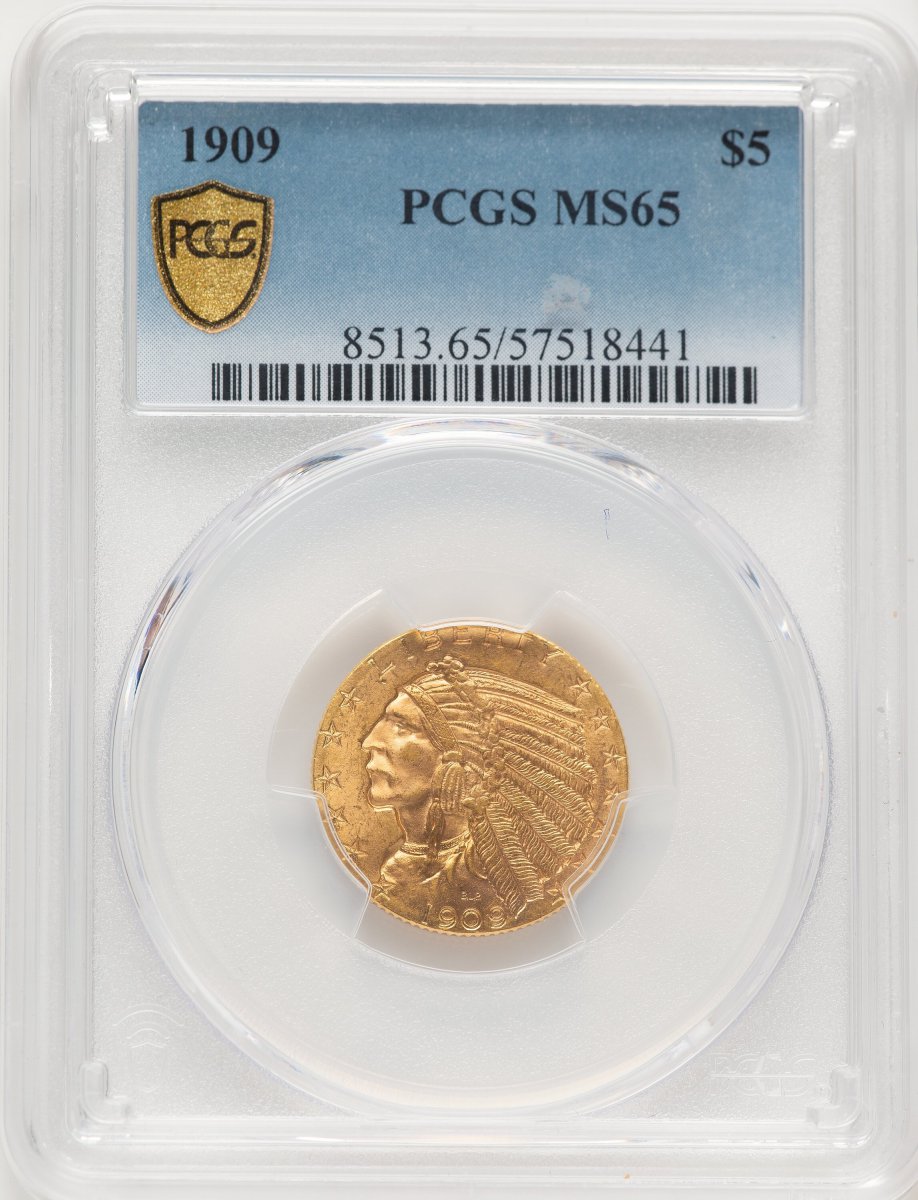 65 1909 Indian Half Eagles (1909 $5 PCGS Secure) (1909) – PCGS