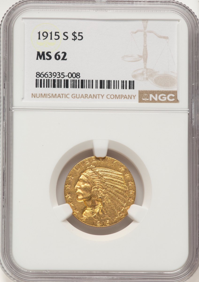 62 1915-S Indian Half Eagles (1915-S $5) (1915-S) – NGC