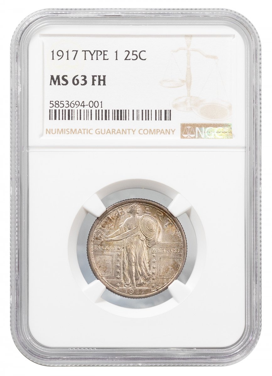 MS-63 FH 1917-Standing Liberty Quarter – Type 1 No Stars Below Eagle – NGC