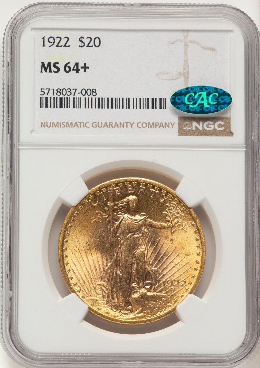 64 1922 Saint-Gaudens Double Eagles (1922 $20 CAC NGC Plus) (1922) – NGC