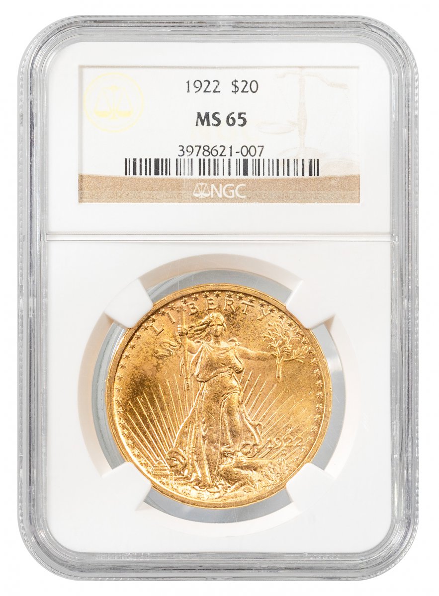 MS-65 1922-St. Gaudens $20 – Type 3 With Motto – NGC