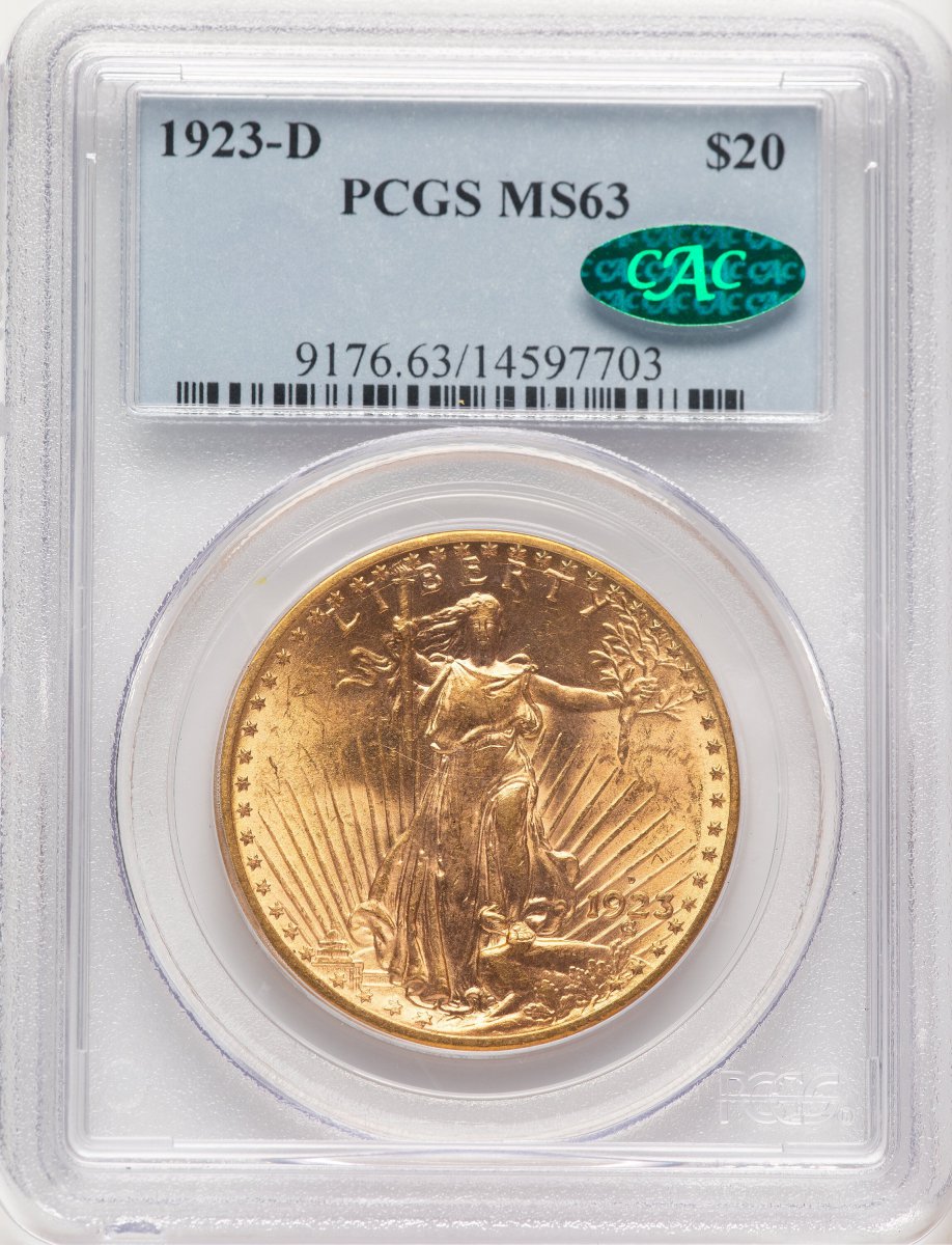 63 1923-D Saint-Gaudens Double Eagles (1923-D $20 CAC) (1923-D) – PCGS