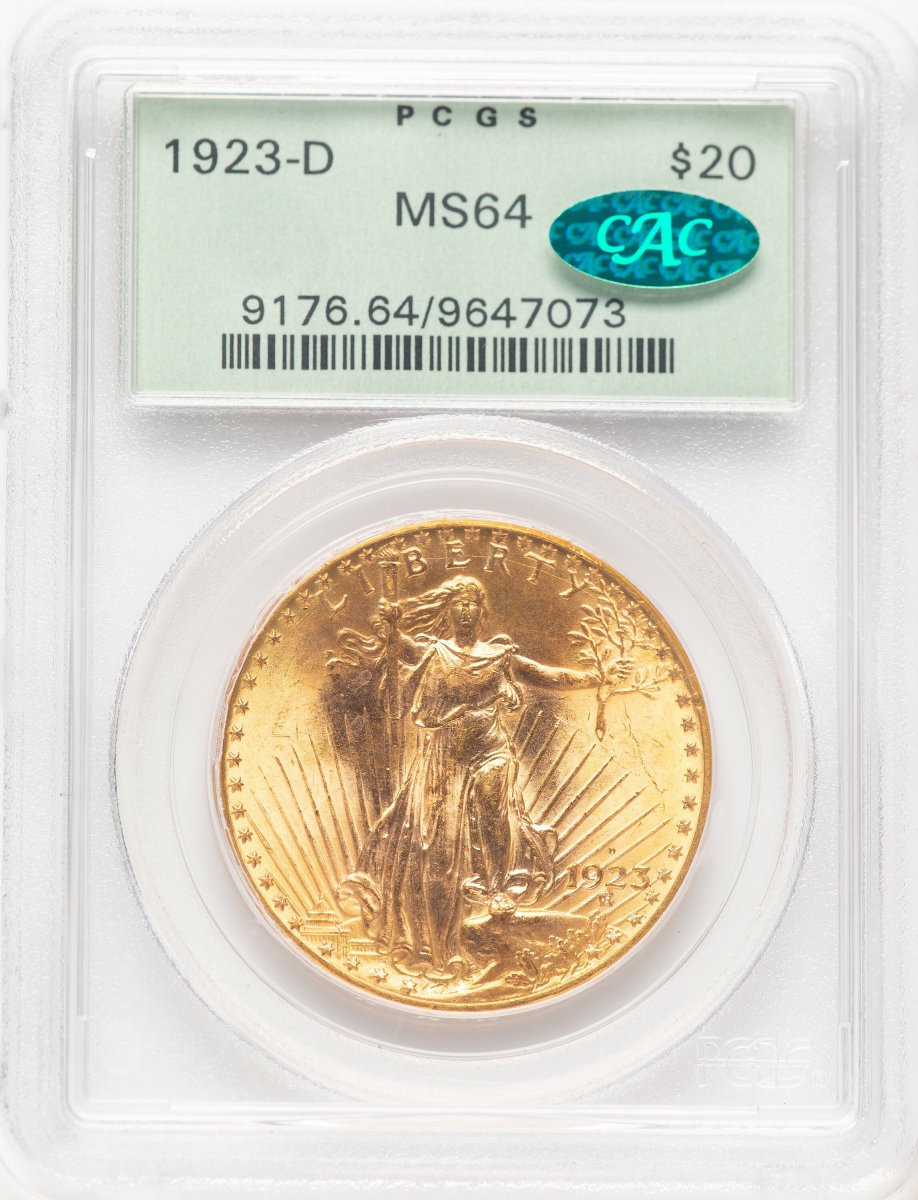 64 1923-D Saint-Gaudens Double Eagles (1923-D $20 CAC) (1923-D) – PCGS