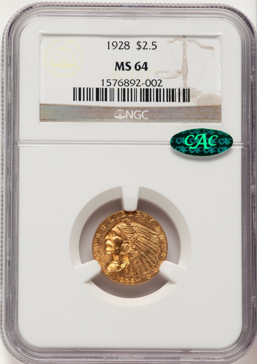 64 1928 Indian Quarter Eagles (1928 $2 1/2 CAC) (1928) – NGC