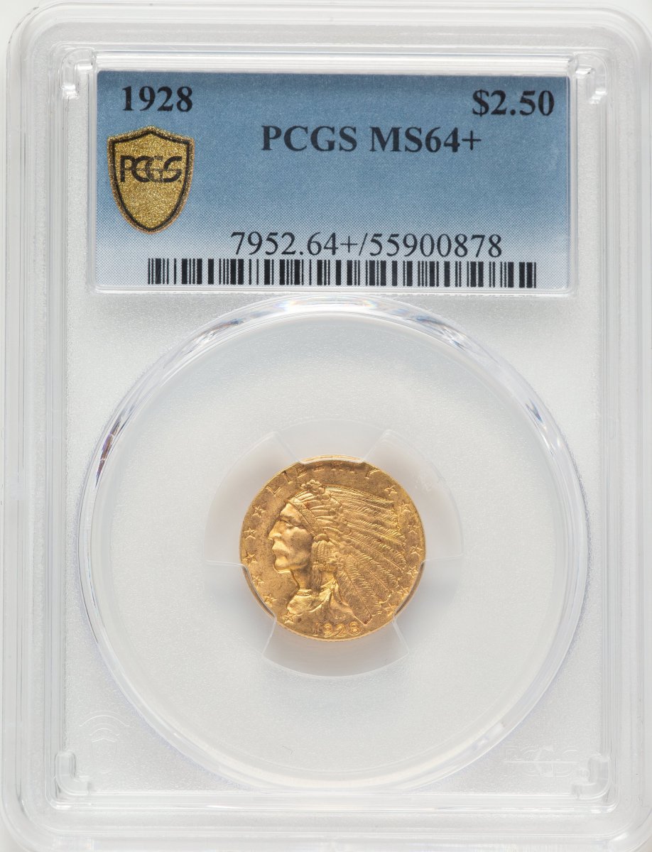 64 1928 Indian Quarter Eagles (1928 $2 1/2 PCGS Secure PCGS Plus) (1928) – PCGS