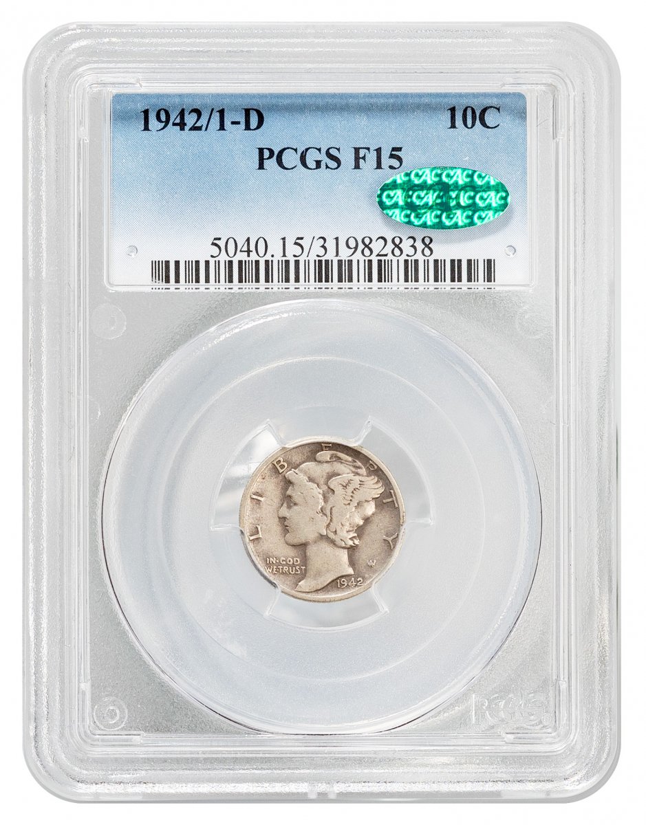 Fine-15 CAC 1942/1-D-Half-Dimes and Dimes – Mercury Dime – PCGS