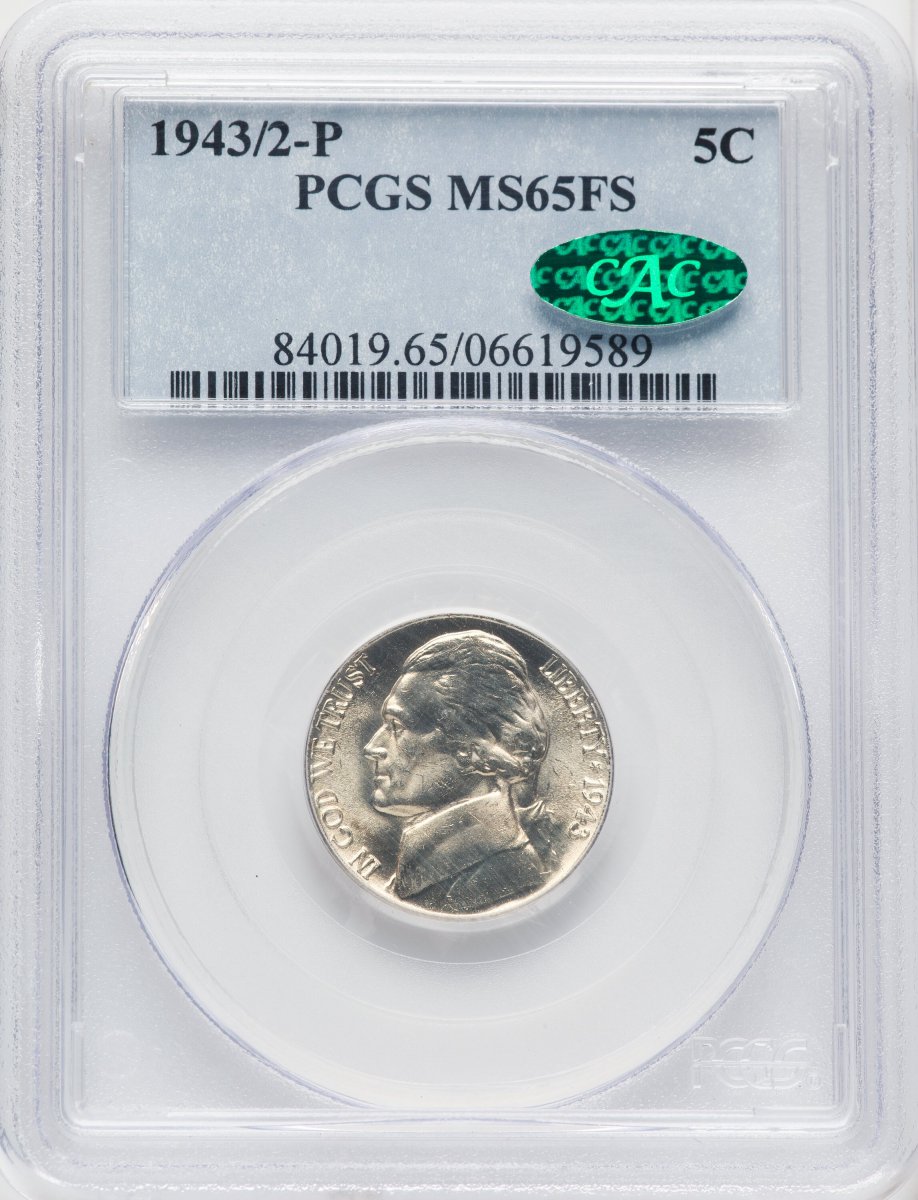 65 1943/2-P Jefferson Nickels (1943/2-P 5C, FS CAC) (1943/2-P) – PCGS