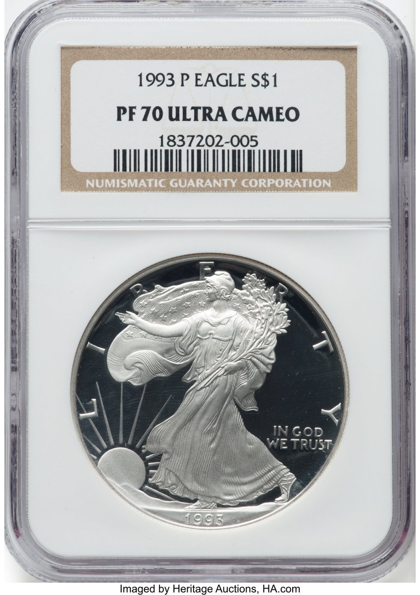 70 1993-P Modern Bullion Coins (1993-P Proof Silver Eagle 1 oz Brown Label) (1993-P) – NGC
