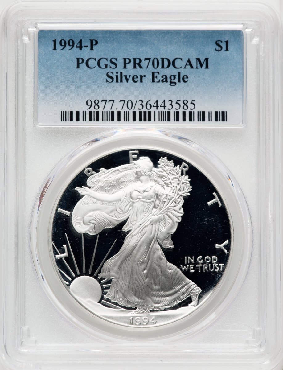 70 1994-P Modern Bullion Coins (1994-P Proof Silver Eagle 1 oz Blue Gradient) (1994-P) – PCGS
