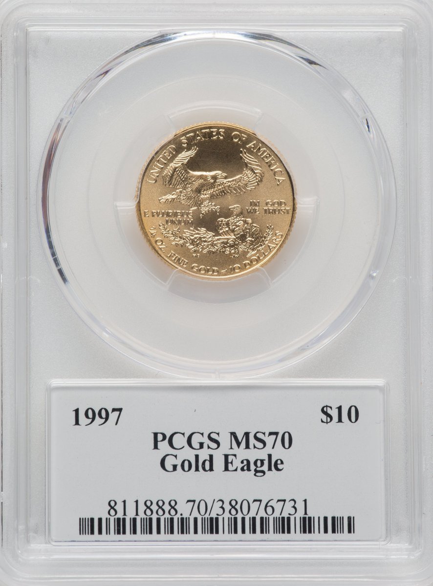 70 1997 Modern Bullion Coins (1997 $10 Quarter-Ounce Gold Eagle, Moy Ultra High Relief Signature, MS) (1997) – PCGS