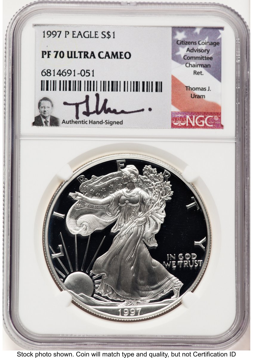 70 1997-P Modern Bullion Coins (1997-P Proof Silver Eagle 1 oz Thomas Uram) (1997-P) – NGC