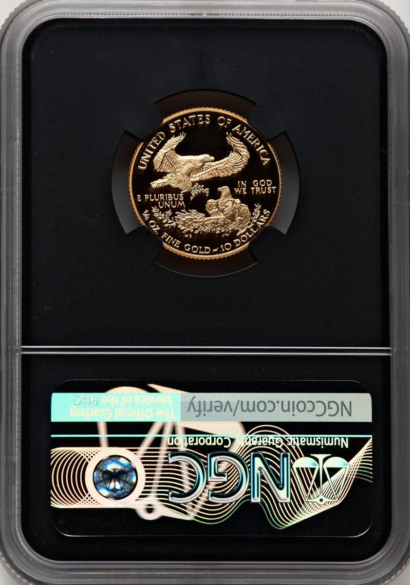 70 1998-W Modern Bullion Coins (1998-W Proof Gold Eagle 1/4 oz Miles Standish Blk Core) (1998-W) – NGC