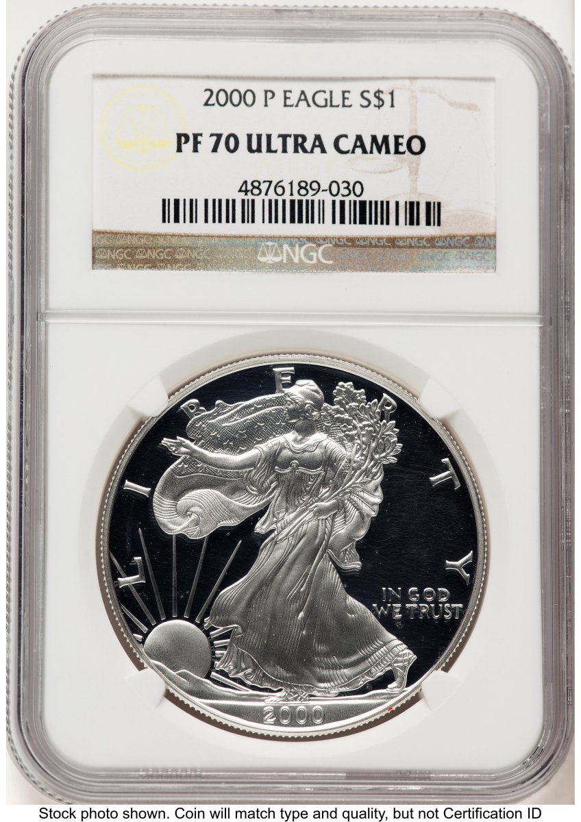 70 2000-P Modern Bullion Coins (2000-P Proof Silver Eagle 1 oz Brown Label) (2000-P) – NGC