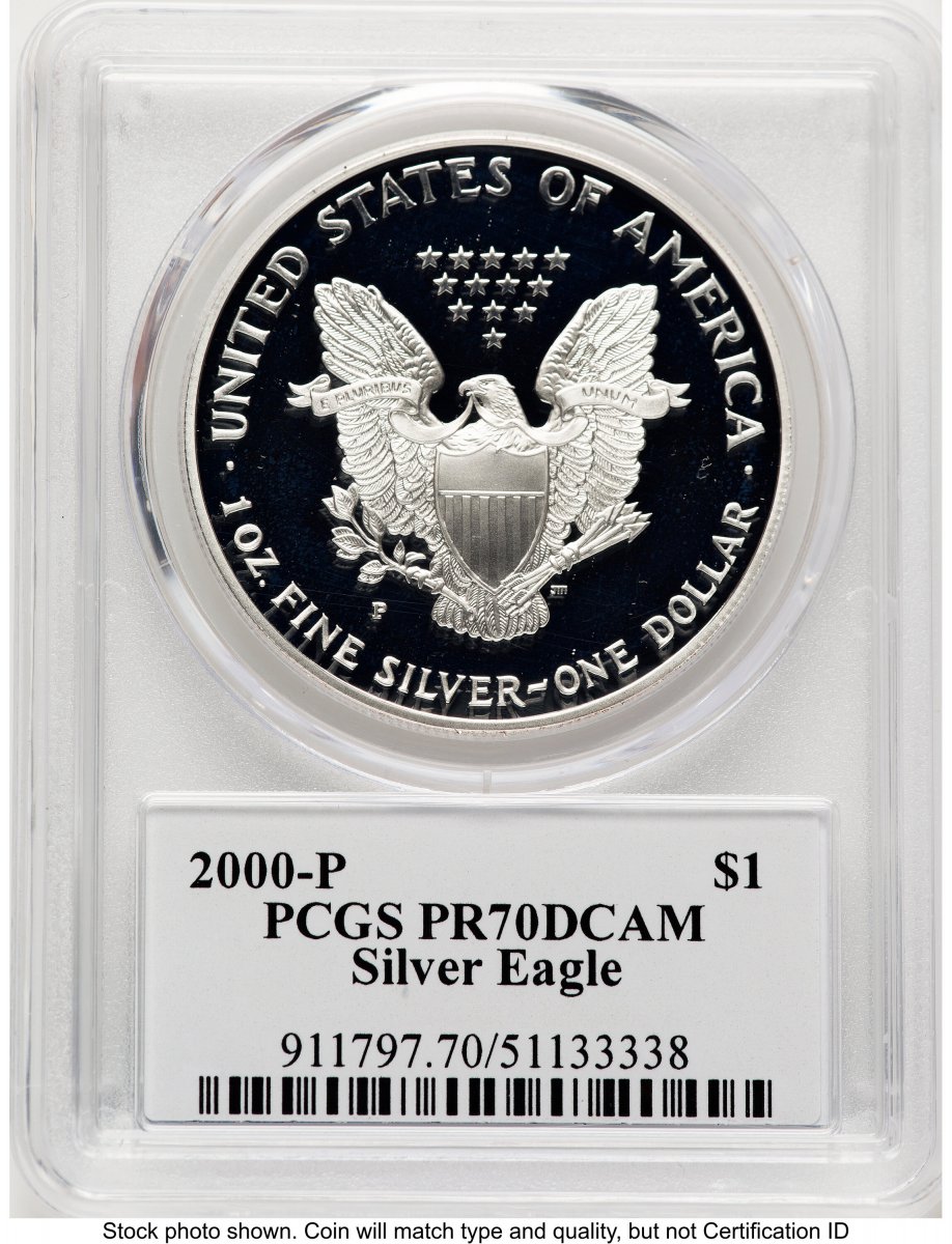70 2000-P Modern Bullion Coins (2000-P Proof Silver Eagle 1 oz TD Rogers) (2000-P) – PCGS