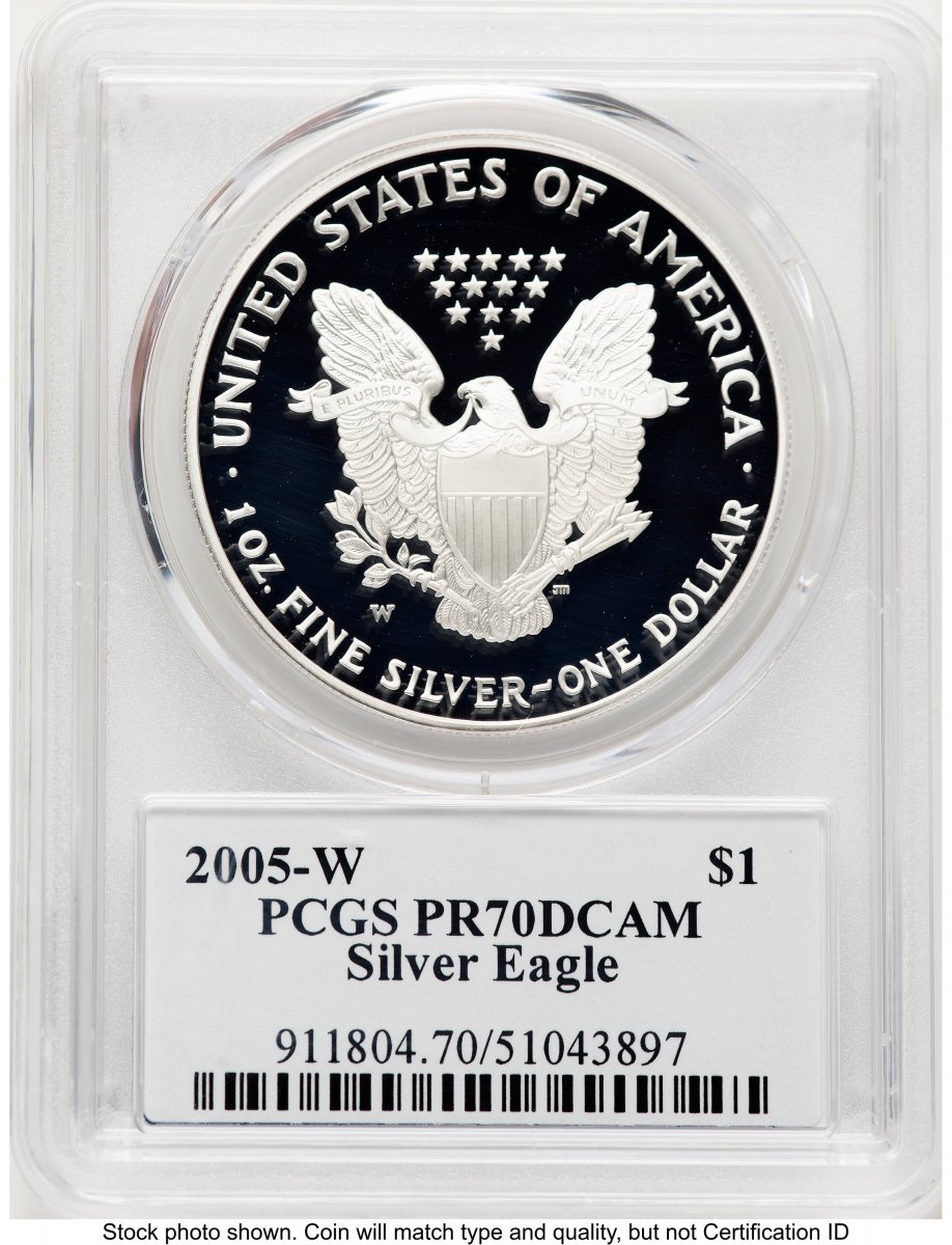 70 2005-W Modern Bullion Coins (2005-W Proof Silver Eagle 1 oz TD Rogers) (2005-W) – PCGS