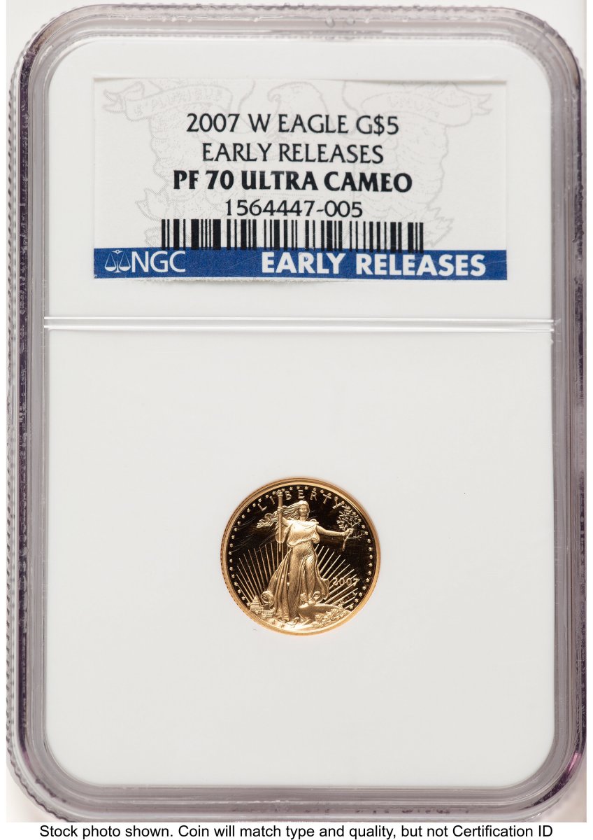 70 2007-W Modern Bullion Coins (2007-W Proof Gold Eagle 1/10 oz ER Blue) (2007-W) – NGC