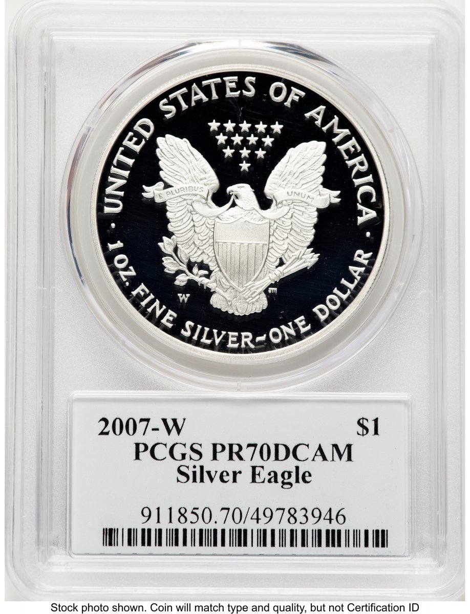 70 2007-W Modern Bullion Coins (2007-W Proof Silver Eagle 1 oz TD Rogers) (2007-W) – PCGS