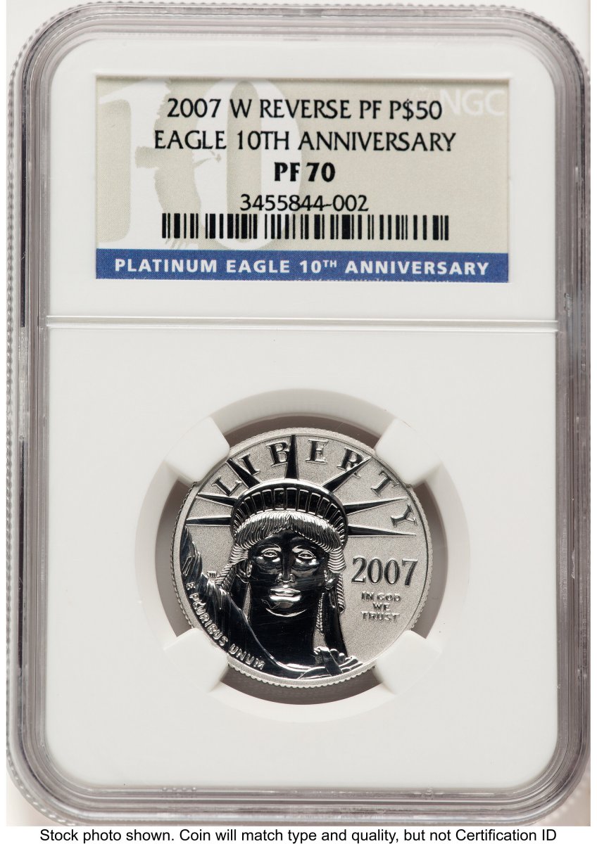 70 2007-W Modern Bullion Coins (2007-W Reverse Proof Platinum Eagle 1/2 oz 10th Anniversary Label) (2007-W) – NGC
