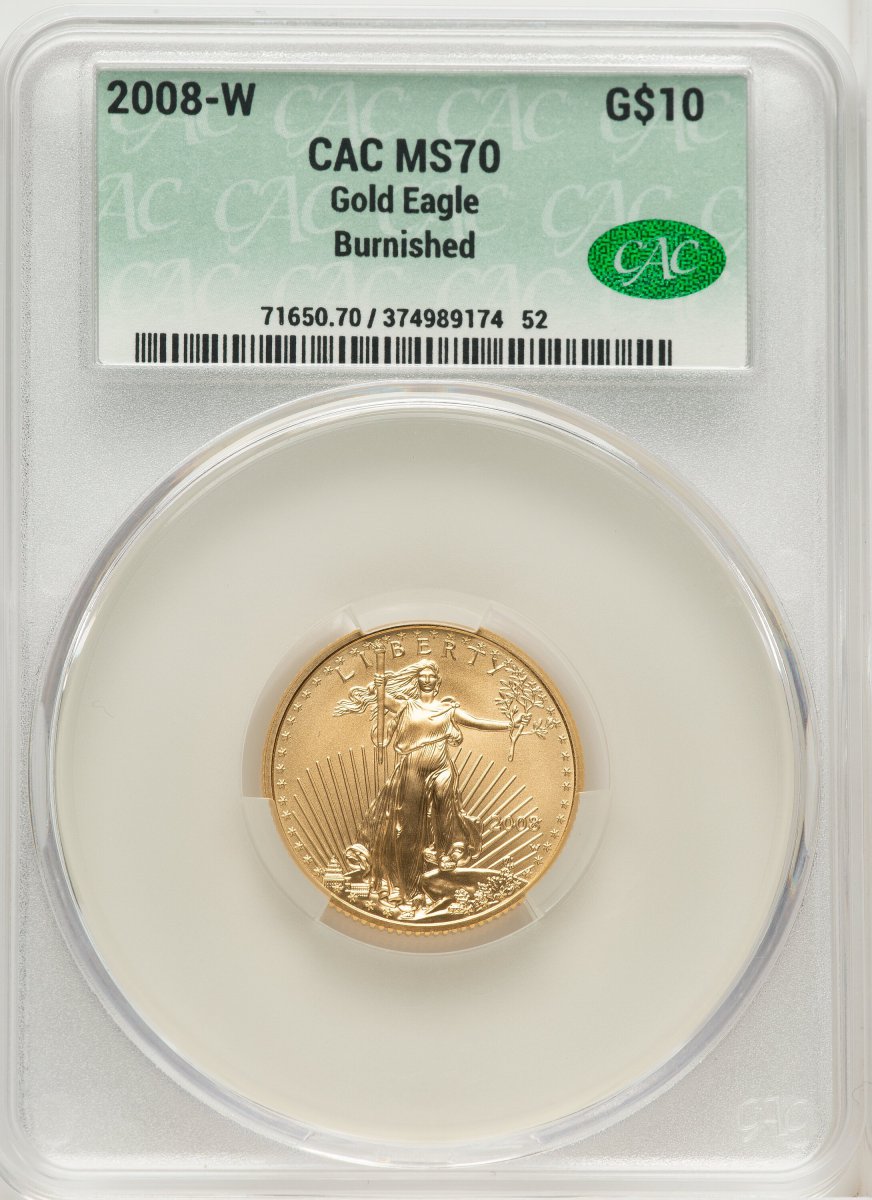 70 2008-W Modern Bullion Coins (2008-W Burnished Gold Eagle 1/4 oz Non Designation) (2008-W) – CACG