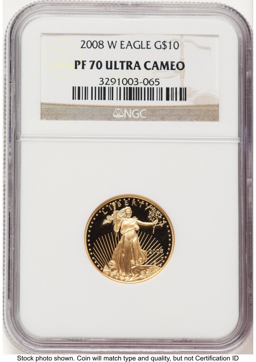 70 2008-W Modern Bullion Coins (2008-W Proof Gold Eagle 1/4 oz Brown Label) (2008-W) – NGC