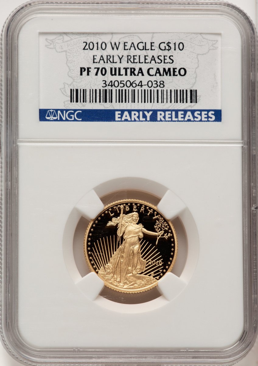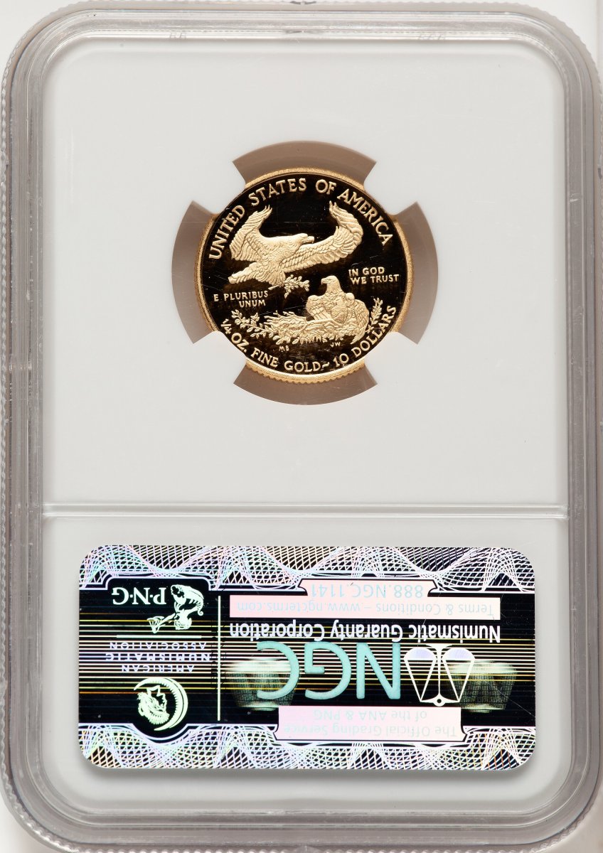 70 2010-W Modern Bullion Coins (2010-W Proof Gold Eagle 1/4 oz ER Blue) (2010-W) – NGC
