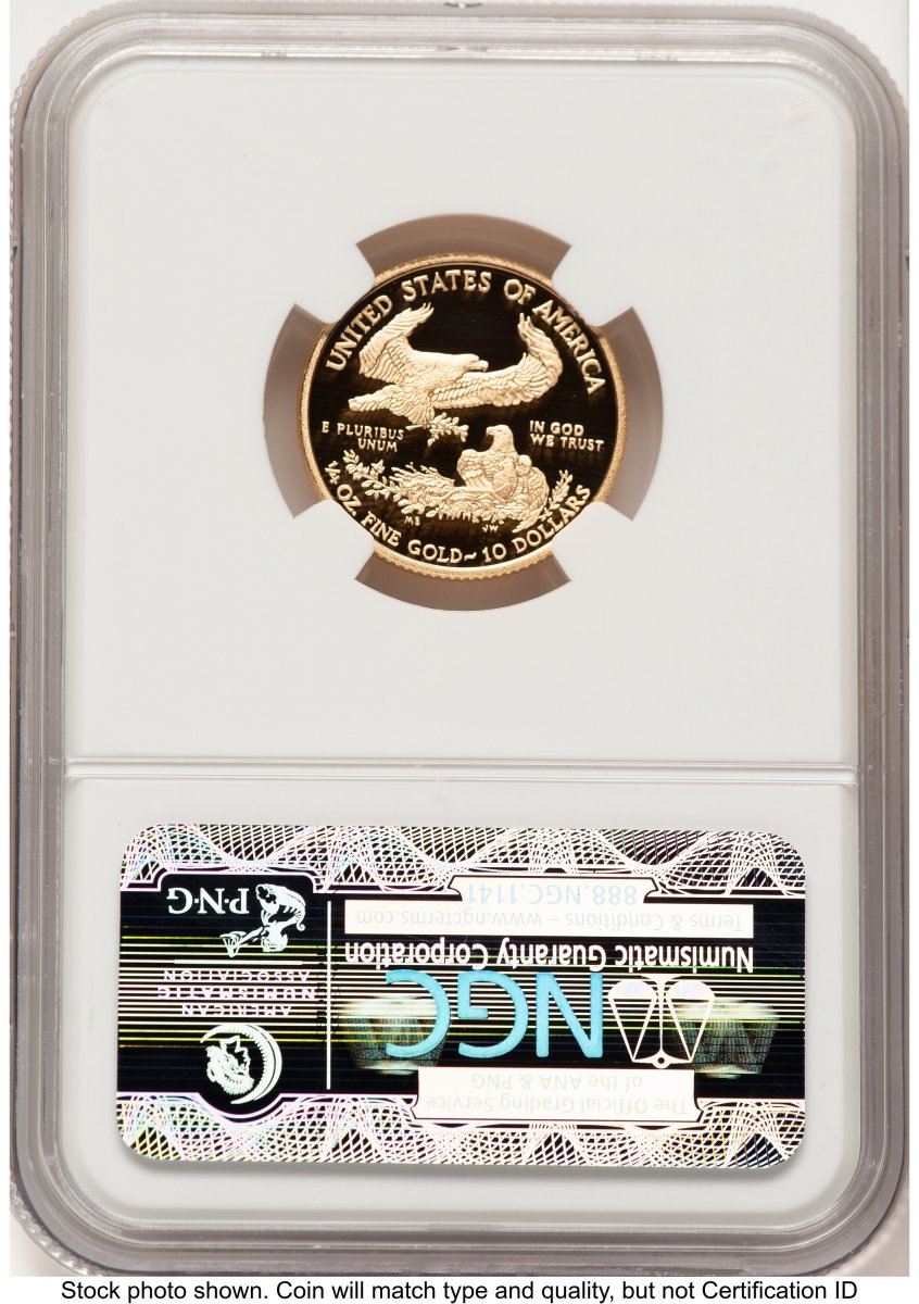 70 2011-W Modern Bullion Coins (2011-W Proof Gold Eagle 1/4 oz ER Blue) (2011-W) – NGC