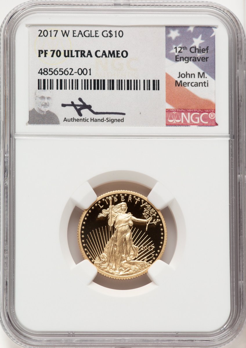 70 2017-W Modern Bullion Coins (2017-W Proof Gold Eagle 1/4 oz John Mercanti) (2017-W) – NGC