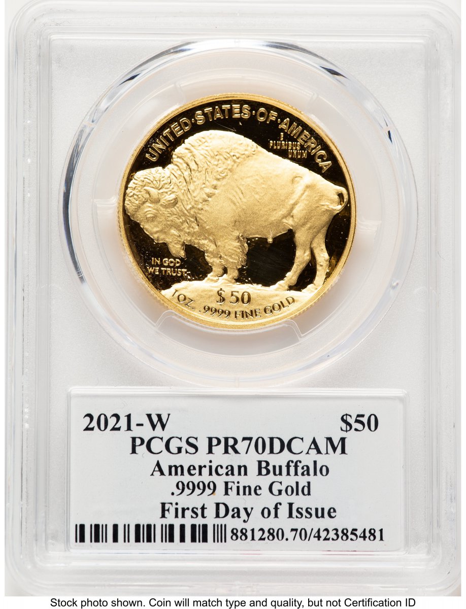 70 2021-W Modern Bullion Coins (2021-W Proof Gold Buffalo 1 oz FDI Reagan Legacy Series Michael Reagan Picture) (2021-W) – PCGS