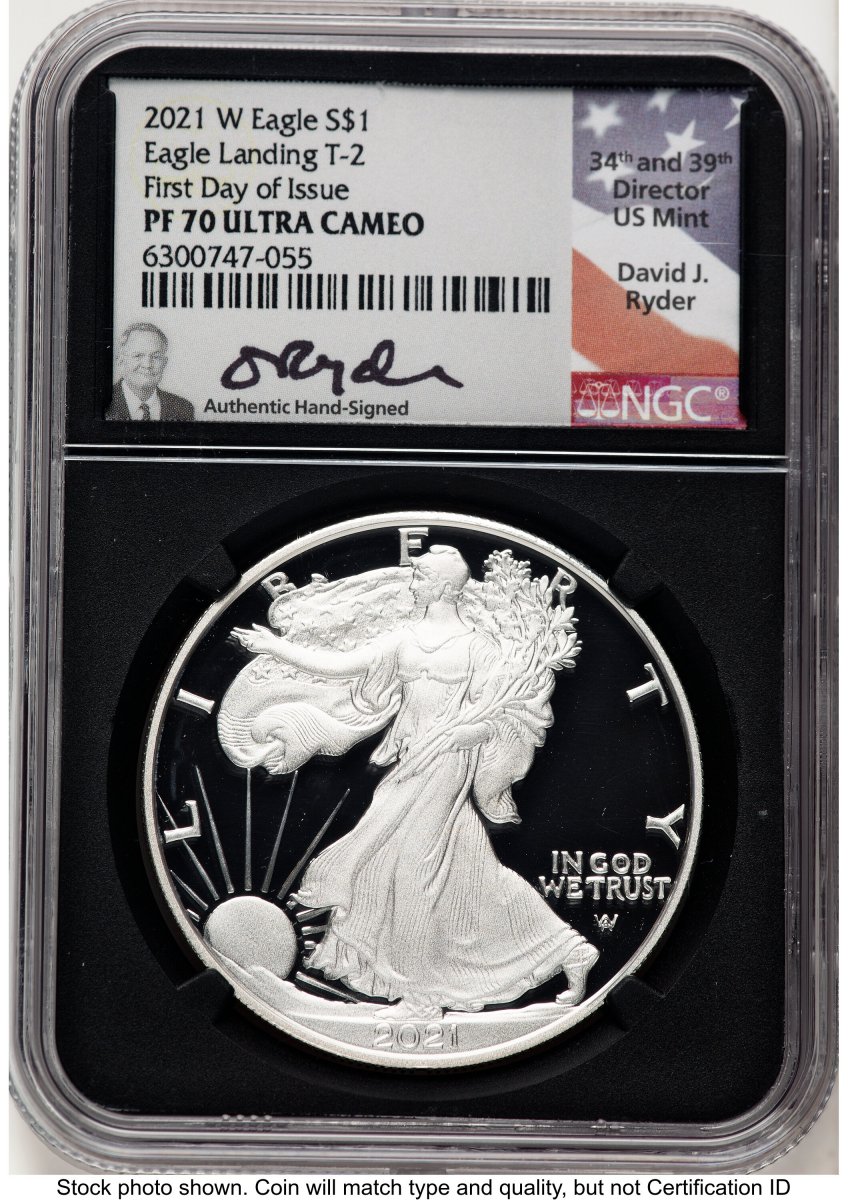 70 2021-W Modern Bullion Coins (2021-W TY2 Proof Silver Eagle 1 oz FDI David Ryder Blk Core) (2021-W) – NGC
