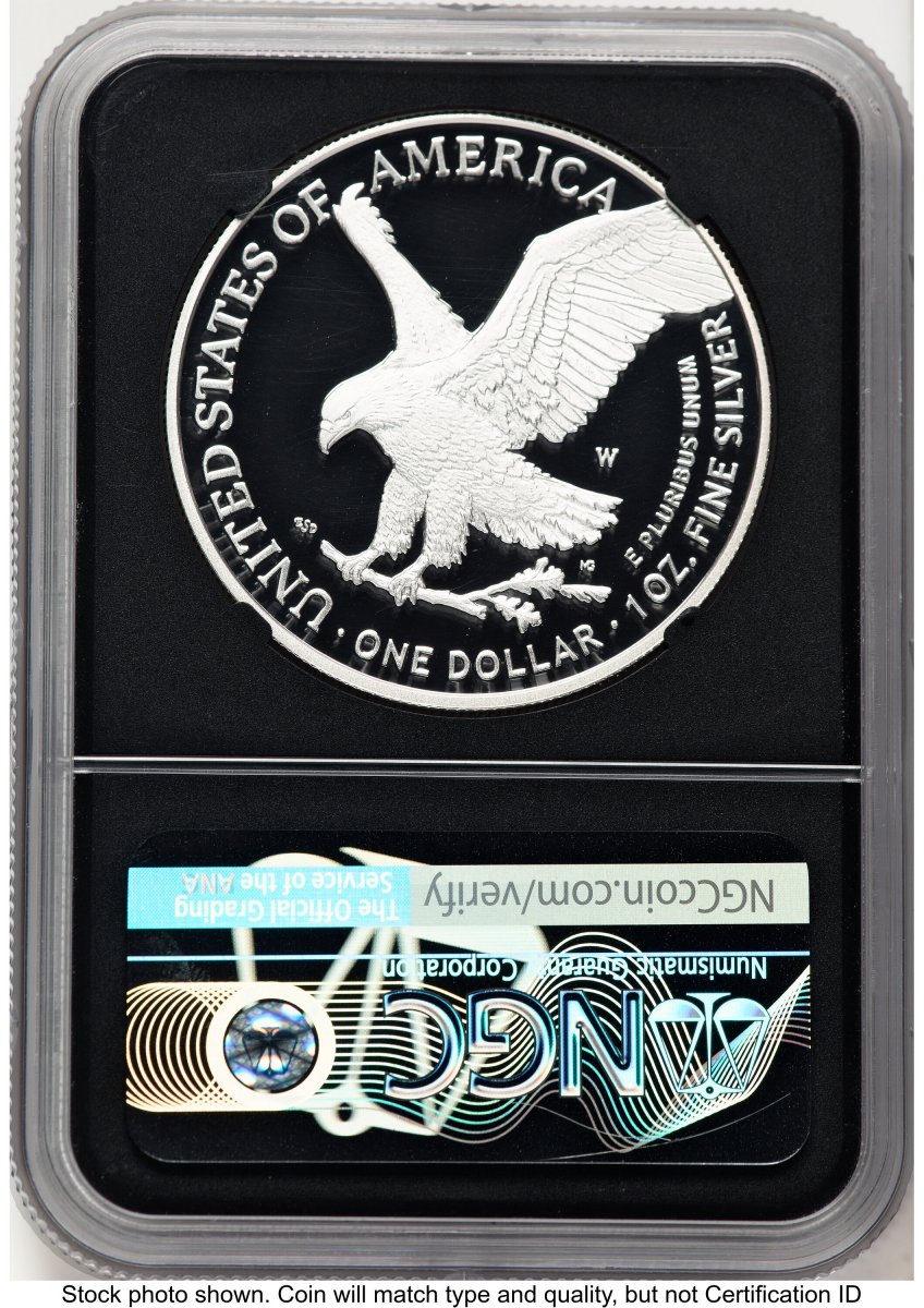 70 2021-W Modern Bullion Coins (2021-W TY2 Proof Silver Eagle 1 oz FDI Ed Moy Blk Core) (2021-W) – NGC