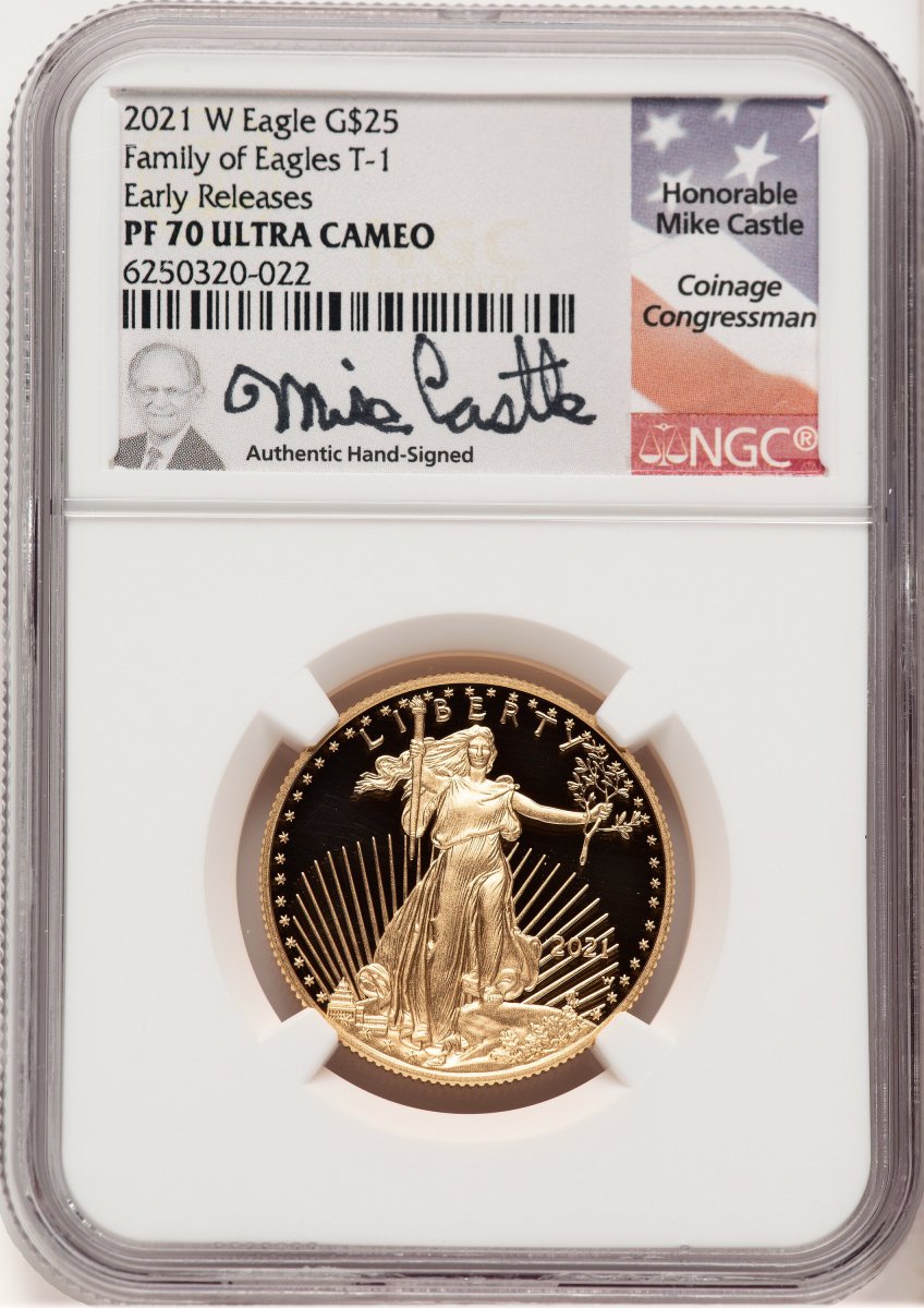 70 2021-W Modern Bullion Coins (2021-W Type 1 Proof Gold Eagle 1/2 oz ER Mike Castle) (2021-W) – NGC