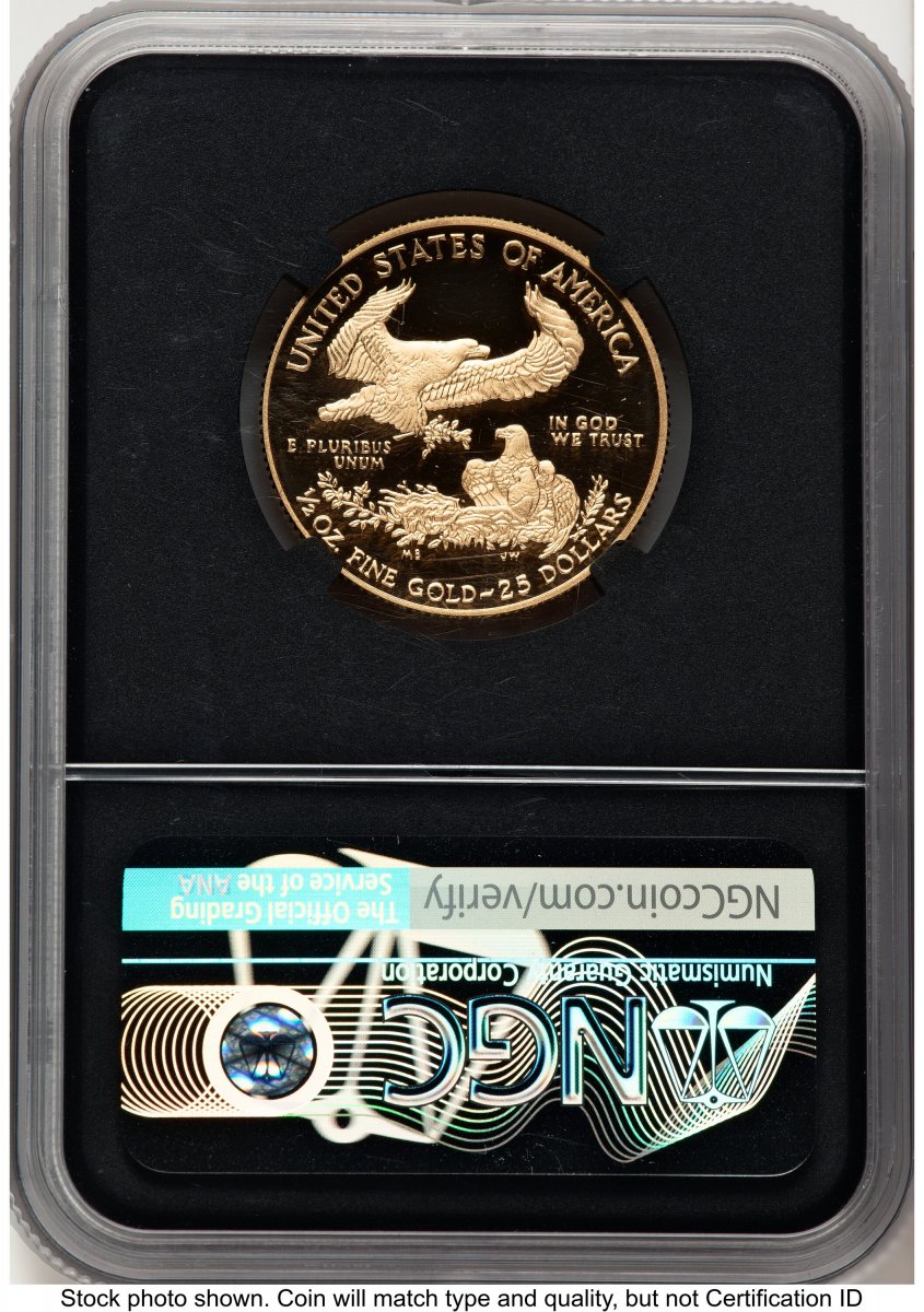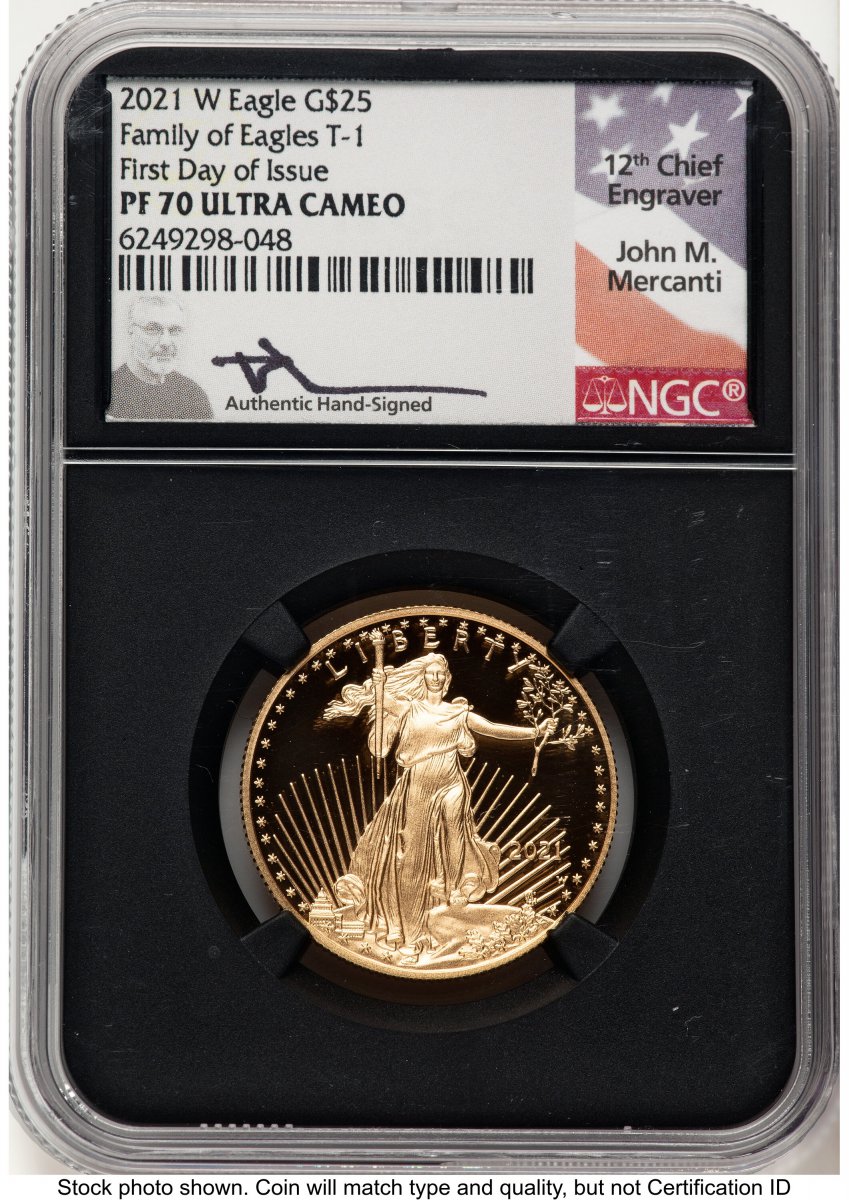 70 2021-W Modern Bullion Coins (2021-W Type 1 Proof Gold Eagle 1/2 oz FDI John Mercanti Blk Core) (2021-W) – NGC