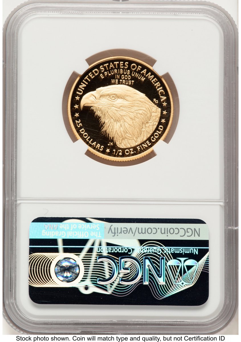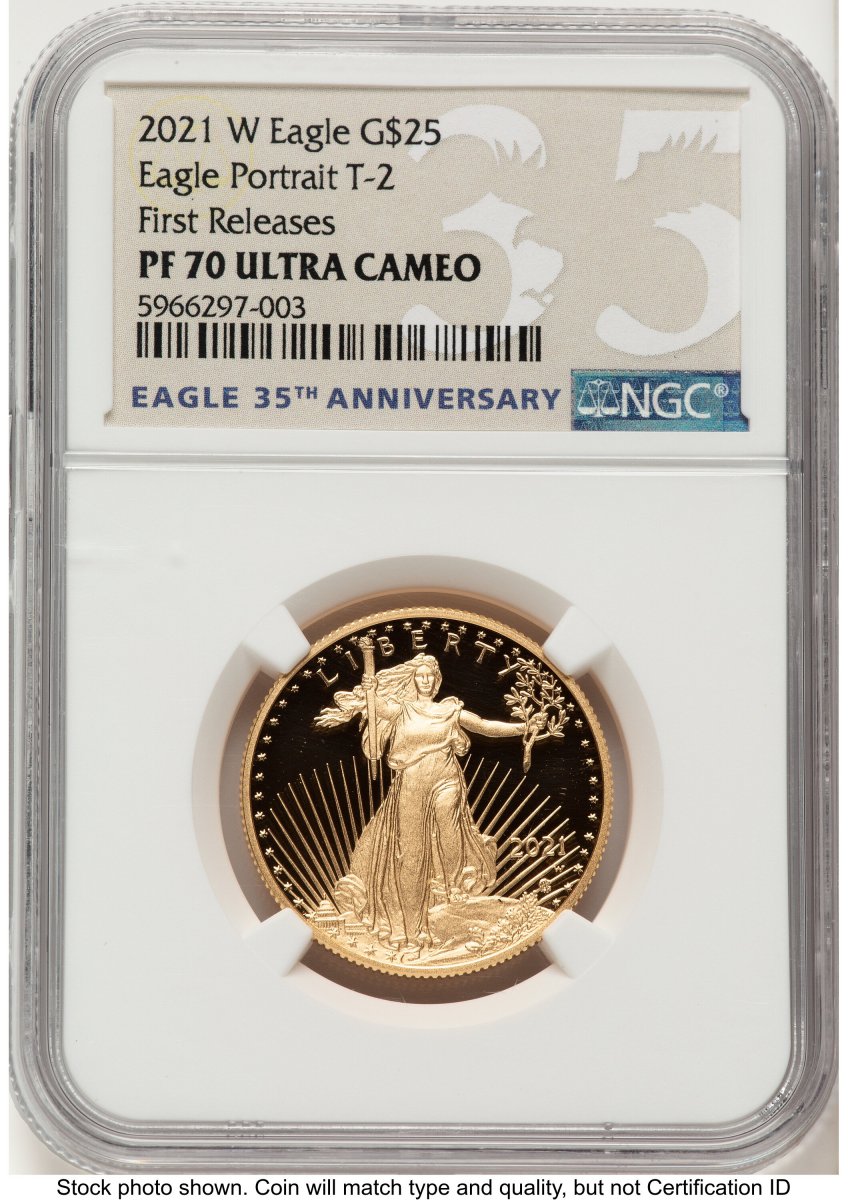 70 2021-W Modern Bullion Coins (2021-W Type 2 Proof Gold Eagle 1/2 oz FR Eagle 35th Anniversary Label) (2021-W) – NGC