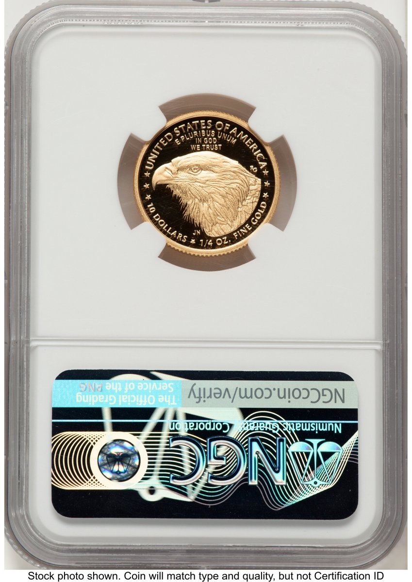 70 2021-W Modern Bullion Coins (2021-W Type 2 Proof Gold Eagle 1/4 oz FR Eagle 35th Anniversary Label) (2021-W) – NGC