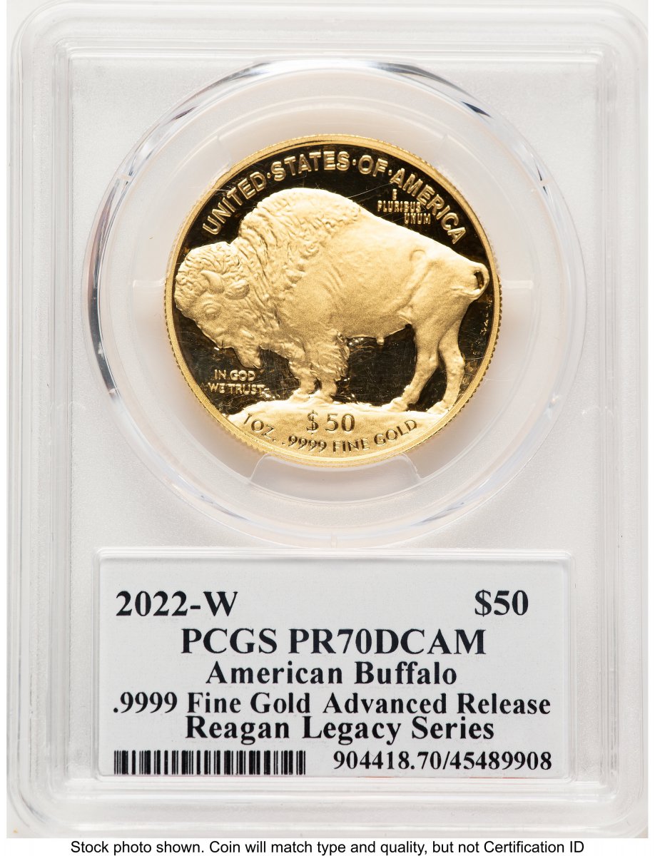 70 2022-W Modern Bullion Coins (2022-W Proof Gold Buffalo 1 oz AR Reagan Legacy Series Michael Reagan Picture) (2022-W) – PCGS