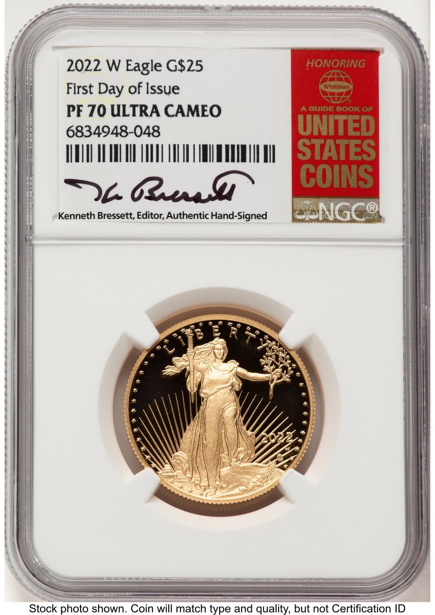70 2022-W Modern Bullion Coins (2022-W Proof Gold Eagle 1/2 oz FDI Kenneth Bressett Red Book) (2022-W) – NGC