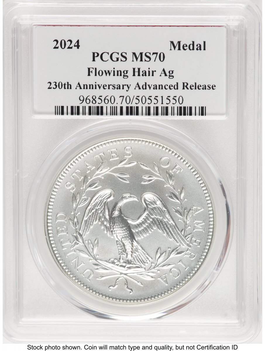 70 2024 Modern Commemoratives (2024-(P) Silver 230th Anniversary Flowing Hair Medal AR John Dannreuther) (2024) – PCGS